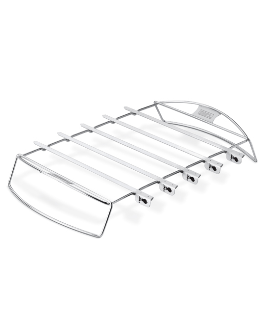 Flat rather than round, these skewers are designed to hold food in place when the skewer is turned. The unique design allows you to turn the skewers easily while in the stainless steel rack. Perfect for satays and kabobs
