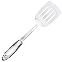 Stainless turner has a comfortable soft grip and is dishwasher safe.
